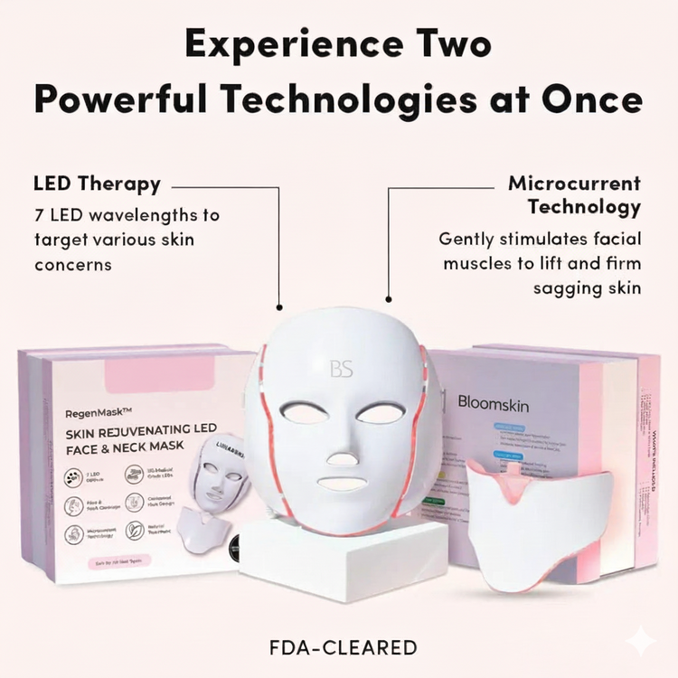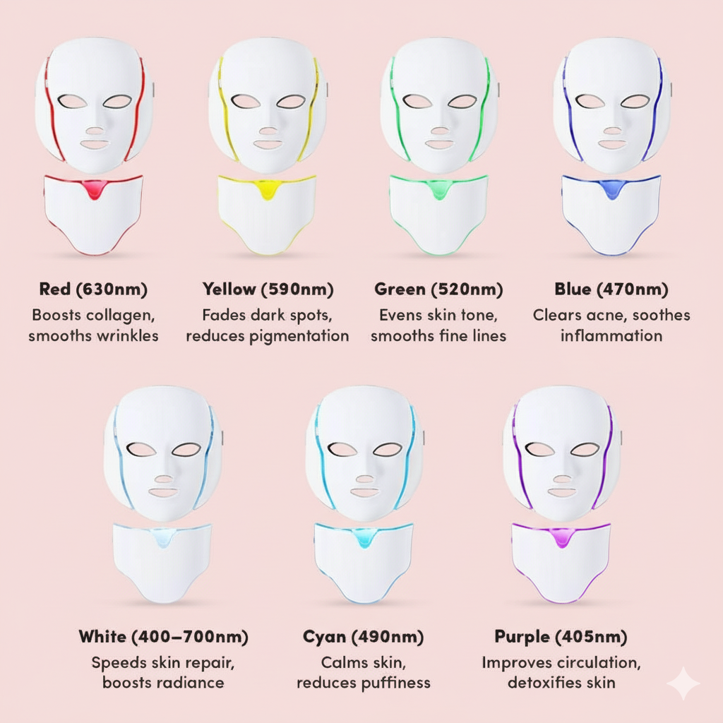 LED wavelengths target skin concerns like redness and pigmentation, while microcurrents boost ATP for muscle toning and collagen production.